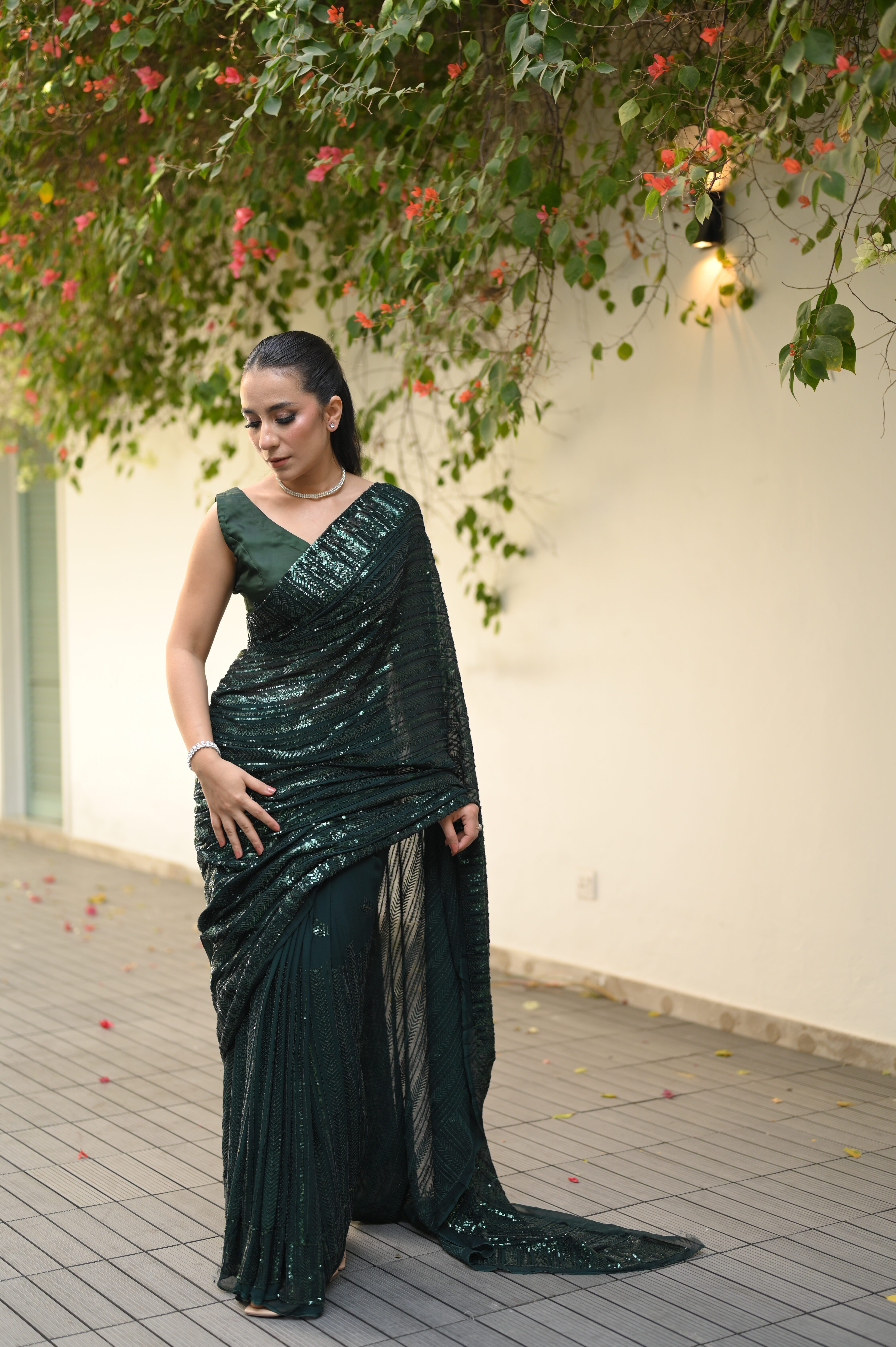 - Stitched pre pleated saree , stitched blouse and a stitched petticoat.