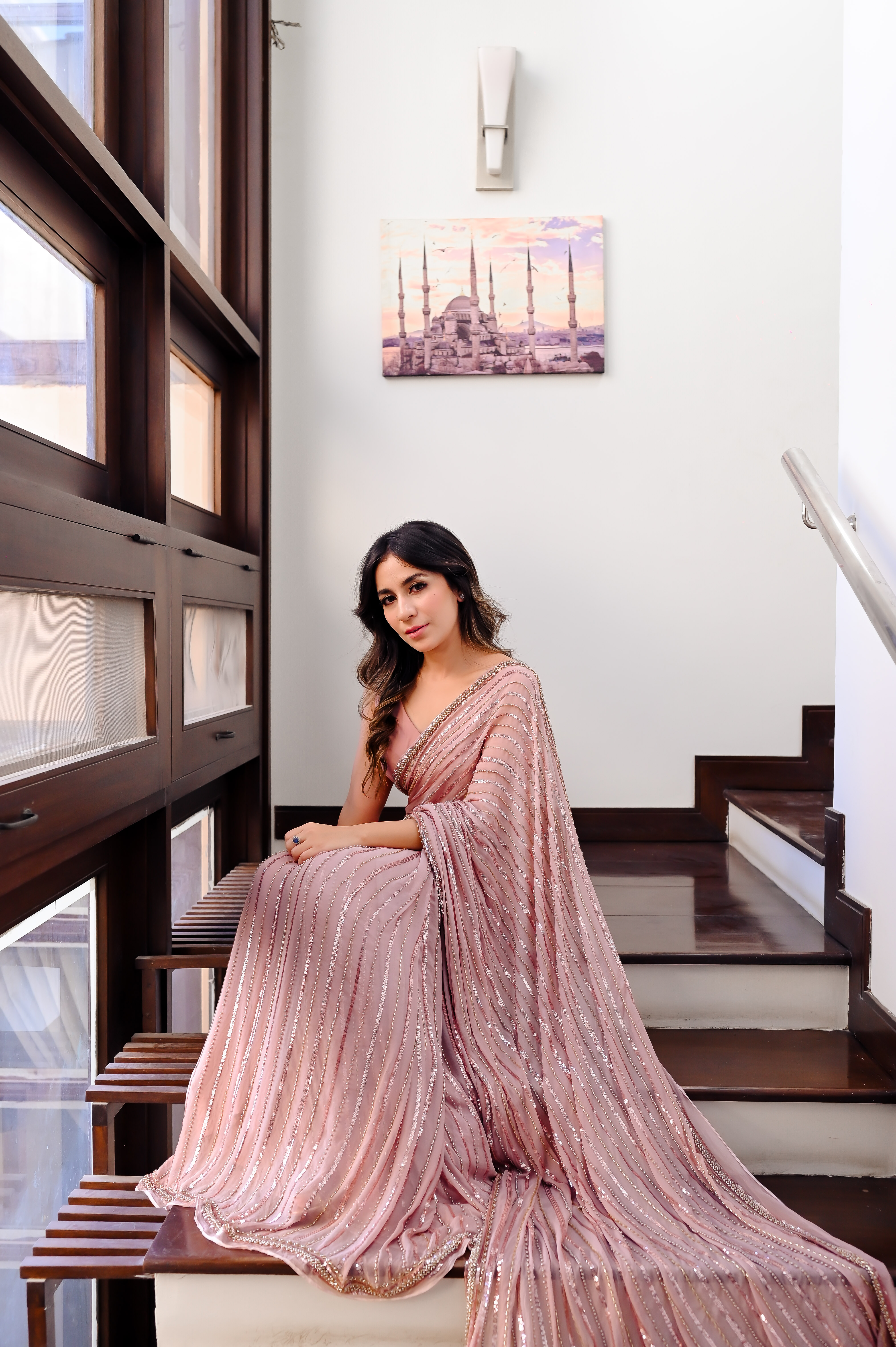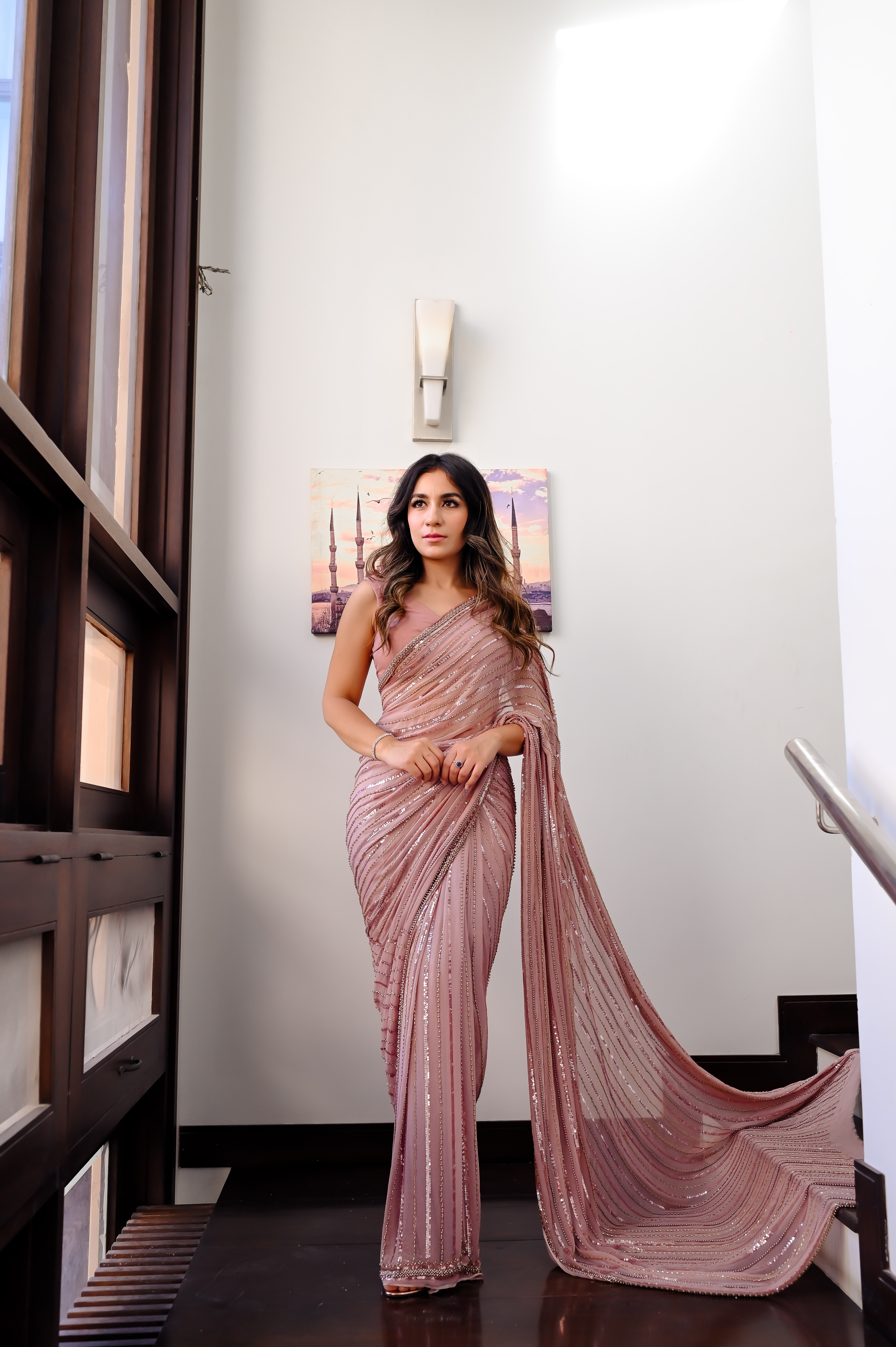 Dusty Rose Saree Embellished with Sequins, Cutdana & Beads SSHC-0008
