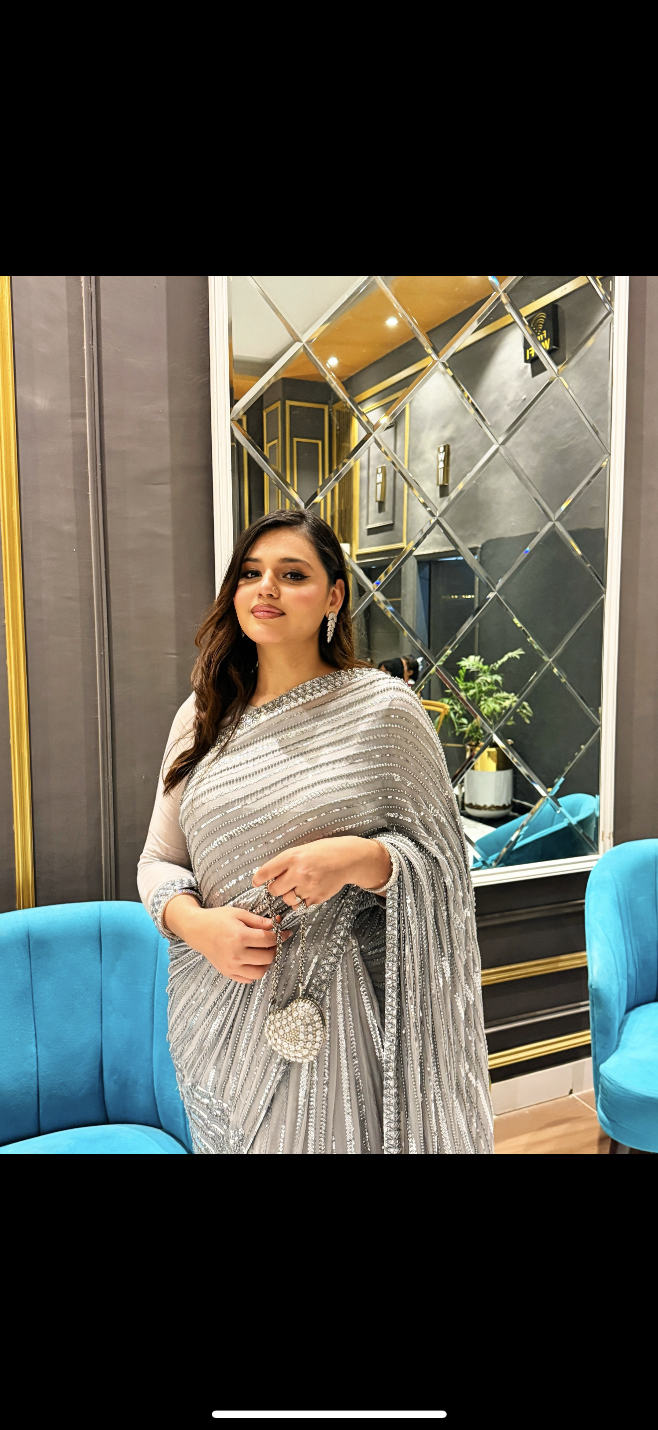 - Stitched pre pleated saree , stitched blouse and a stitched petticoat.