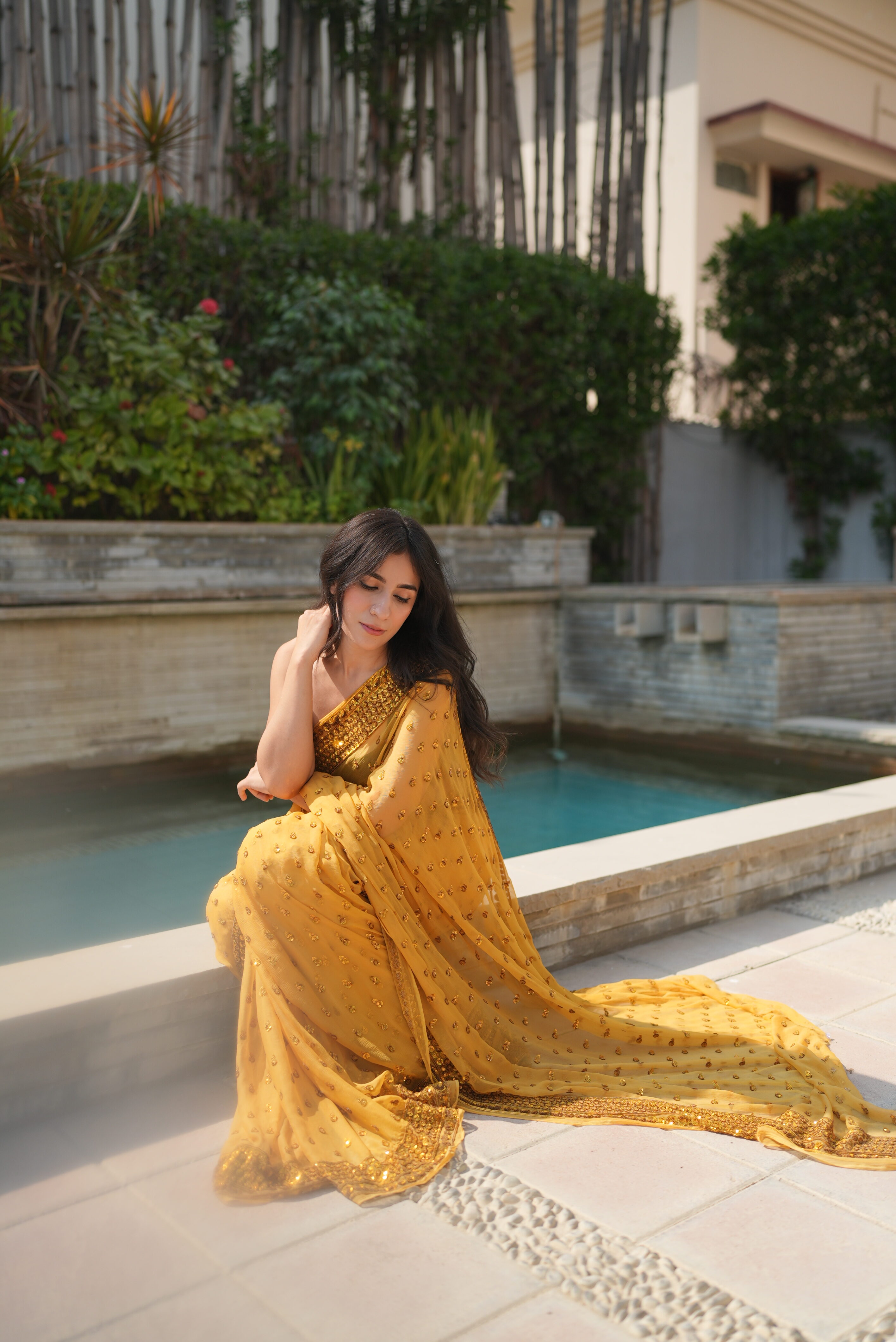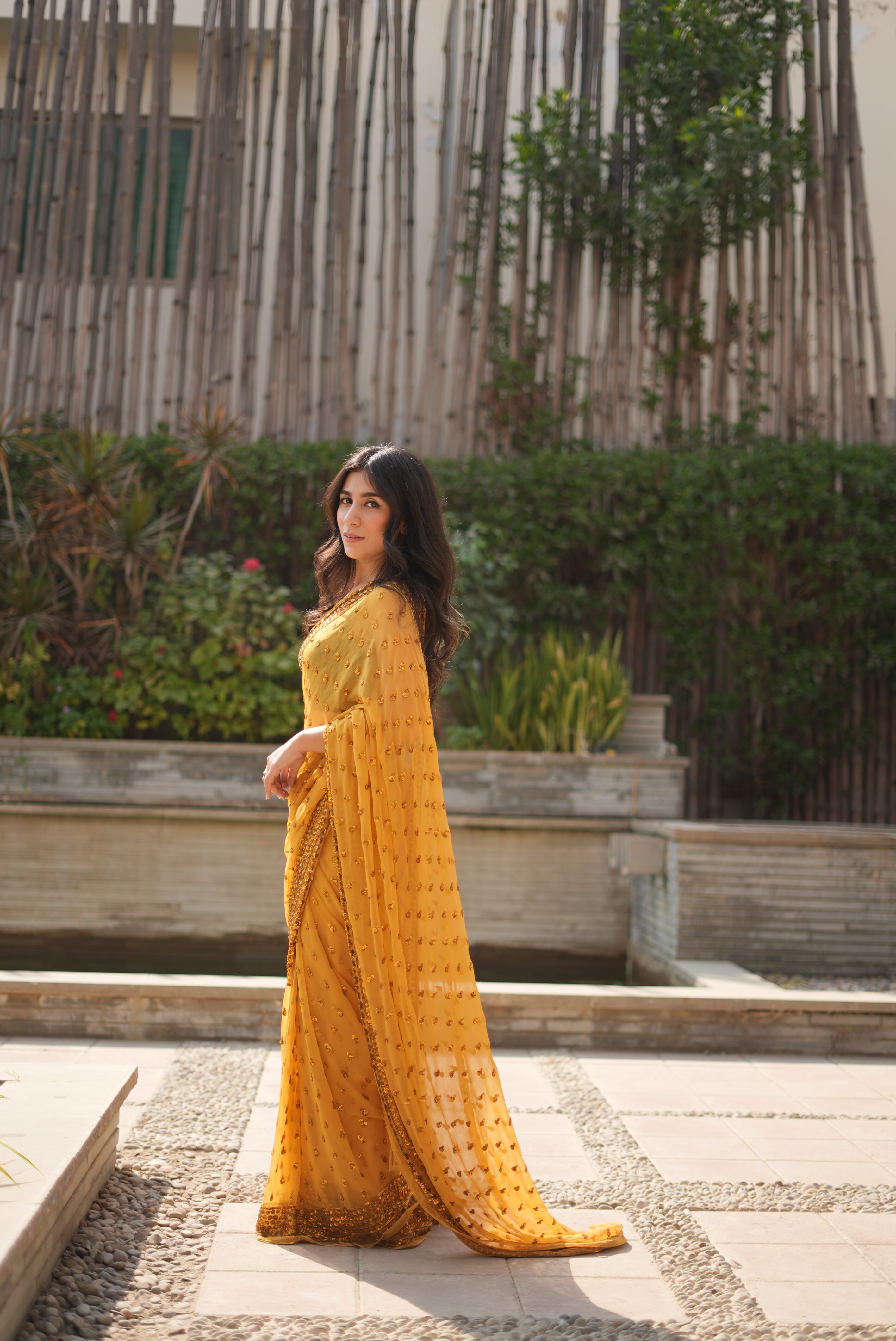 Mustard Yellow Sequins Saree SS-0036