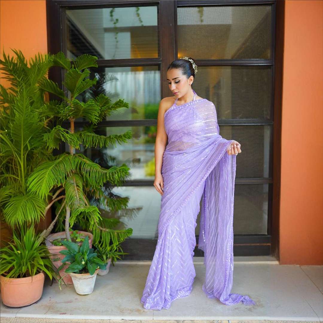 Lilac Striped Sequins Chiffon Saree SS-0007