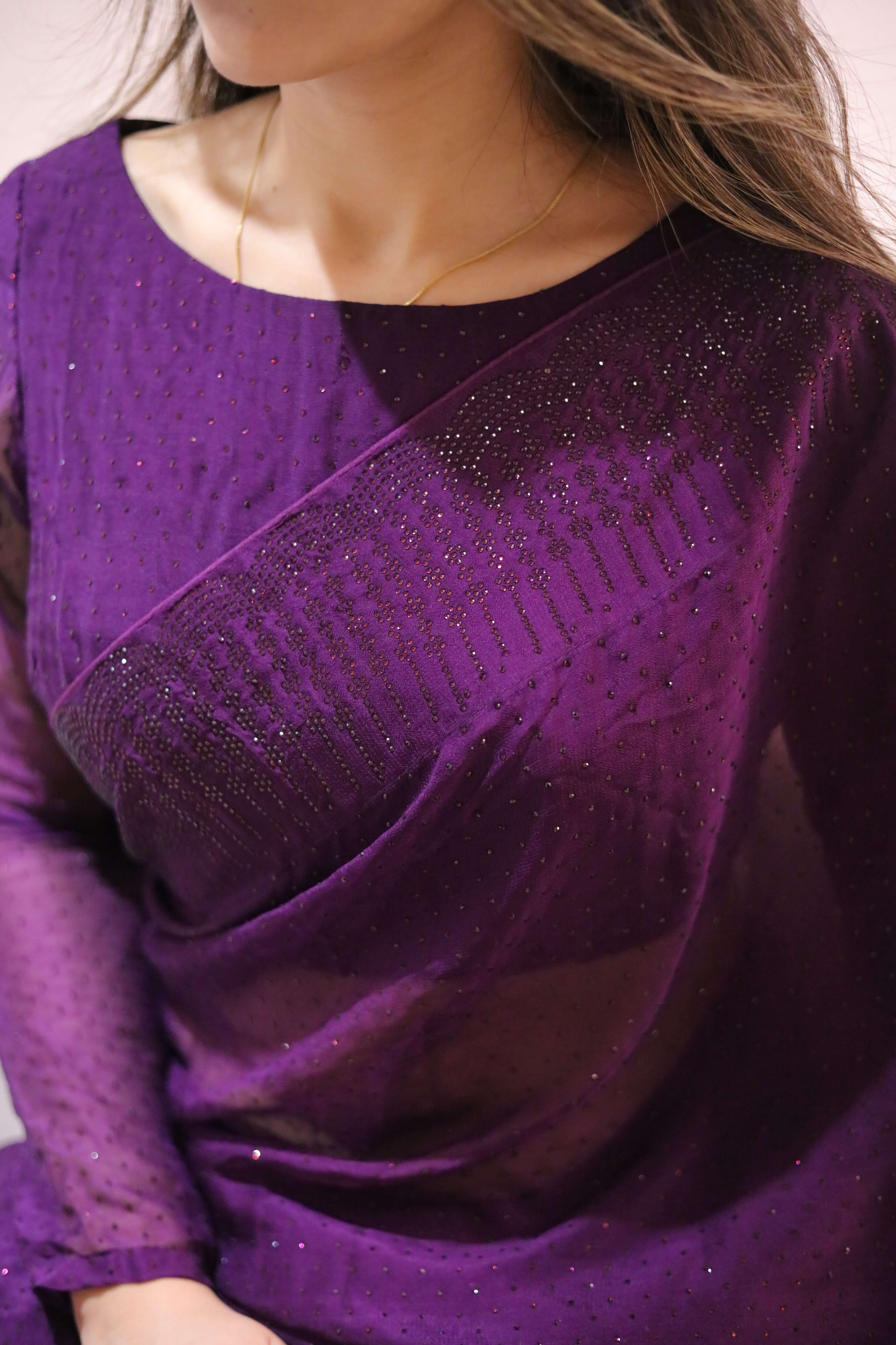 Purple Glass Stones Saree Full Stones-0001